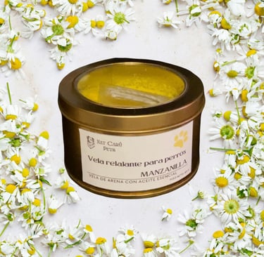 Aquí es donde las velas de arena relajantes para perros (manzanilla o lavanda) cumplen un papel ideal.